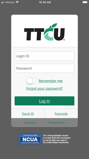 للتسجيل واستخدام التطبيق، يجب على أعضاء TTCU قبول اتفاقية خدمات الخدمات المصرفية الرقمية. TTCU ملتزمة بحماية خصوصية معلومات أعضائها المالية، ويتم تأمين التطبيق بالتأمين الفيدرالي من قبل NCUA. ومع ذلك، قد تتحمل رسوم الرسائل والبيانات من جانب شركة الاتصالات اللاسلكية الخاصة بك.