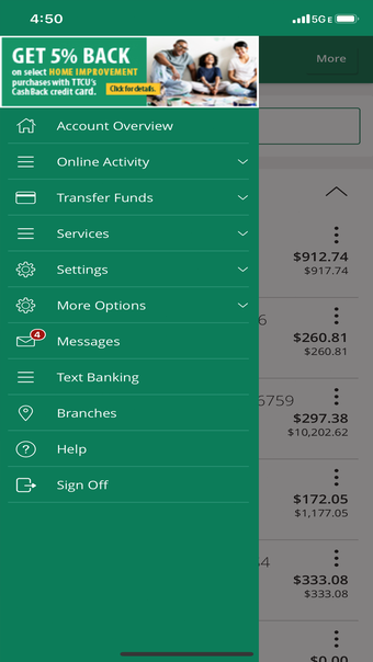 يتيح لك التطبيق عرض رصيد حسابك الحالي وسجل المعاملات، وتحويل الأموال بين حساباتك في TTCU أو مع مؤسسات مالية أخرى، ودفع الأقساط القرضية أو إعداد الدفعات المتكررة، وجدولة أو تعديل دفعات الفواتير، وتتبع أهداف التوفير والرفاهية المالية، وتلقي تنبيهات الحساب في الوقت الحقيقي. بالإضافة إلى ذلك، يمكنك تحديد موقع أقرب فرع لـ TTCU، أو ATM، أو موقع فرع مشترك.